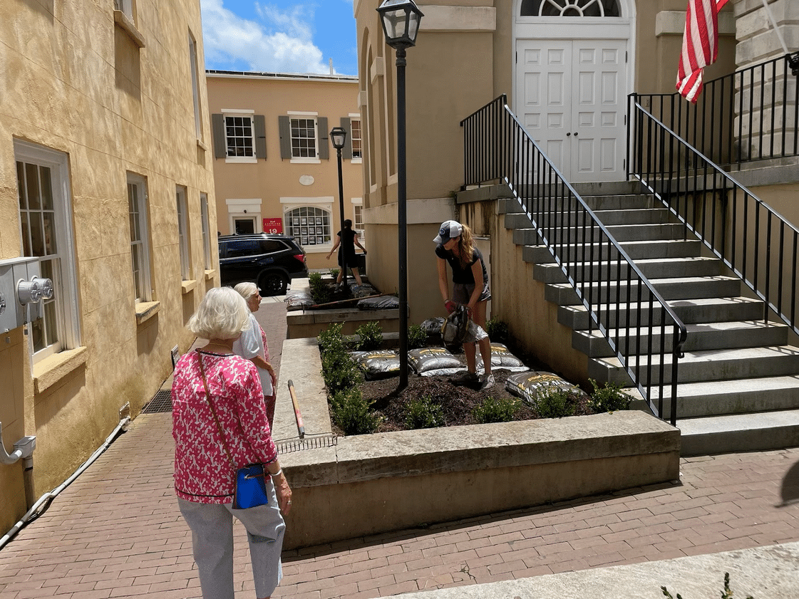 “The Old Exchange Building is one of this country’s premiere examples of Georgian-Palladian design, and we want the gardens to be a reflection of this time period too,” said Chapter Regent Andrea Ulmer.