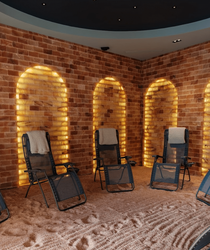 The center offers a range of services not found under one roof anywhere else in the area, including a Himalayan salt room, infrared saunas, float pod, red light therapy, meditation pod, skin care, and bodywork. Benefits include detoxification, relief of muscle and joint pain, reduced stress and anxiety, increased energy, strengthened immunity, improved skin, and better sleep.