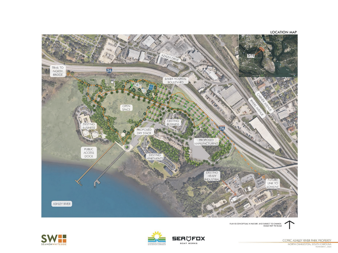 Charleston County Parks will continue to own the entire property. Charleston County Parks and Sea Fox have executed a 90-year lease, and the future public park on the site will be funded by tenant Sea Fox, allowing Charleston County Parks the ability to develop the park without taxpayer funds. The rent paid by Sea Fox and its dry stack marina will also offset operations and maintenance of the future park.