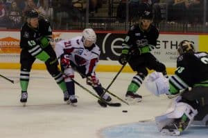 South Carolina got the equalizer from Josh Wilkins with 6:17 to go in the third period. Jon McDonald fired a shot from the left point that Wilkins redirected in. The goal was Wilkins’ fourth point in his last three games.